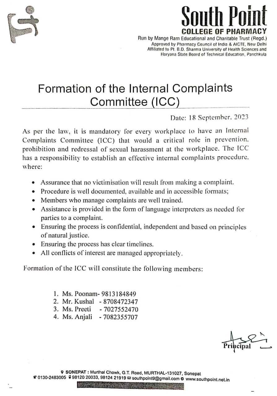 Approved by AICTE,PCI, New Delhi | Affiliated to HSBTE, Panchkula